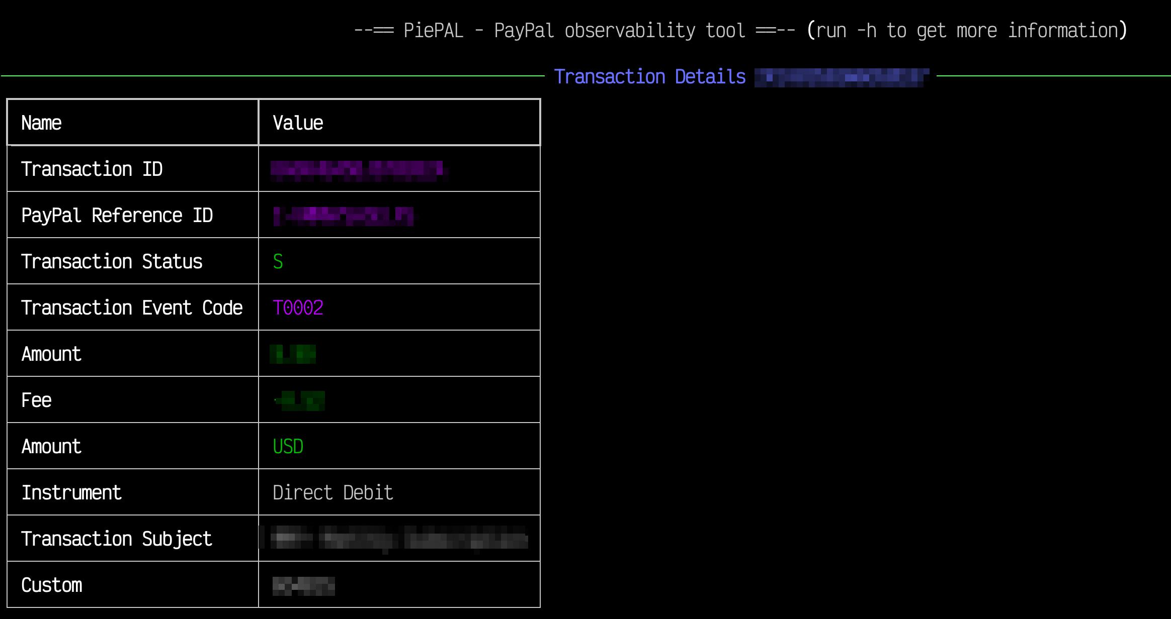 A Python program to fetch and display PayPal transactions and subscription details. The script uses the PayPal REST API to retrieve transactions related to a specific Subscription ID and can display them in a terminal using the rich, - library for a formatted and clean output.